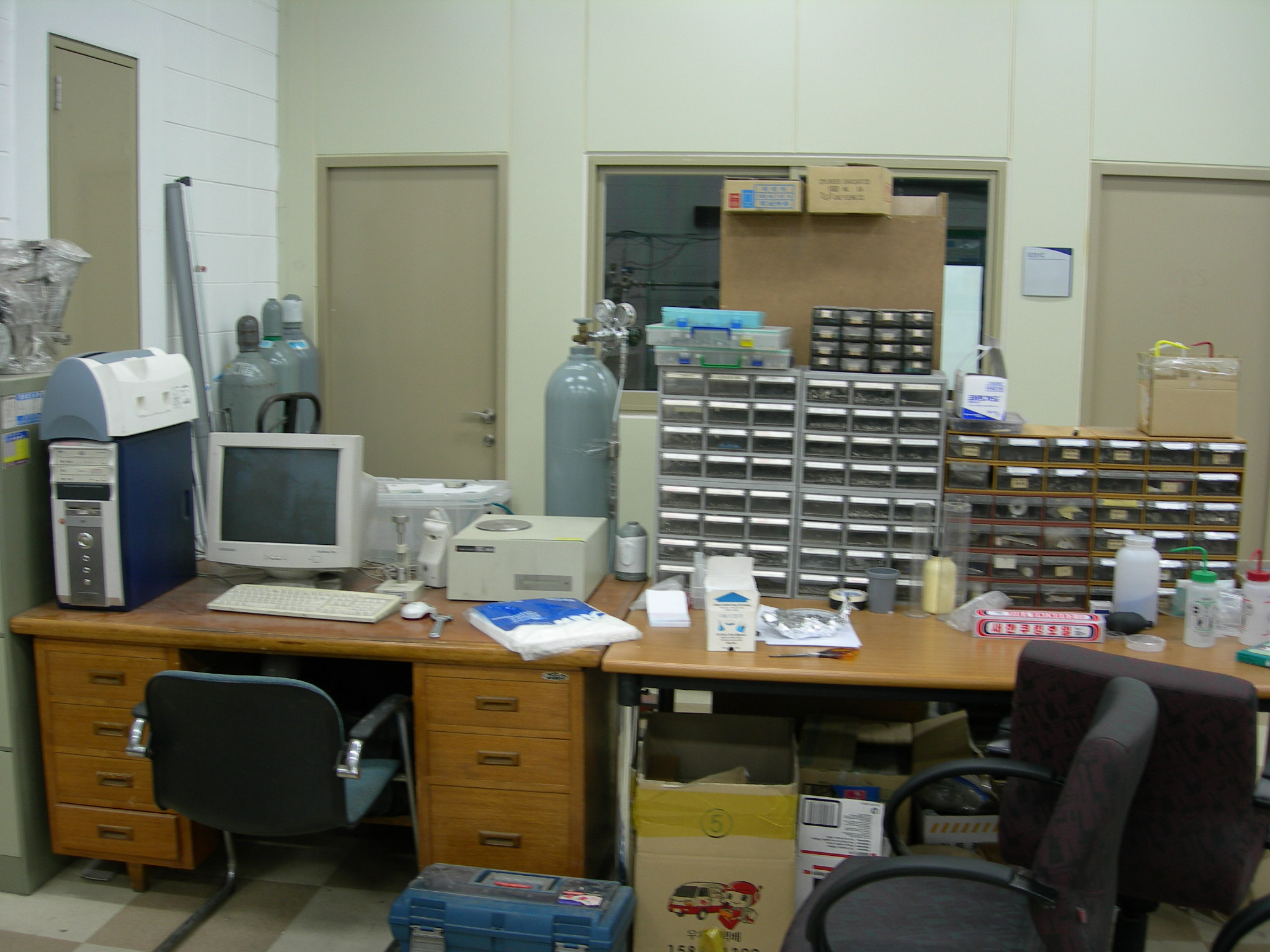 이미 꽤 오래전의 모습이긴 하지만 유행이나 시대의 변화에 둔감한 대학원이니 아마 지금의 모습도 예전과 크게 다르지 않을 듯 하다. 특히 대학원 실험실의 모습은 장비들조차도 거의 변화가 없을 것 같다. 물리학과 대학원은 크게 이론물리 연구실과 실험물리 연구실로 나눌수도 있다. 이론도 여러 종류가 있고 실험도 여러 종류가 있지만, 2000년 후반에 다니던 학교의 연구실들 중 실험은 크게 입자실험 연구실과 박막실험 연구실로 나뉘어 있었다.