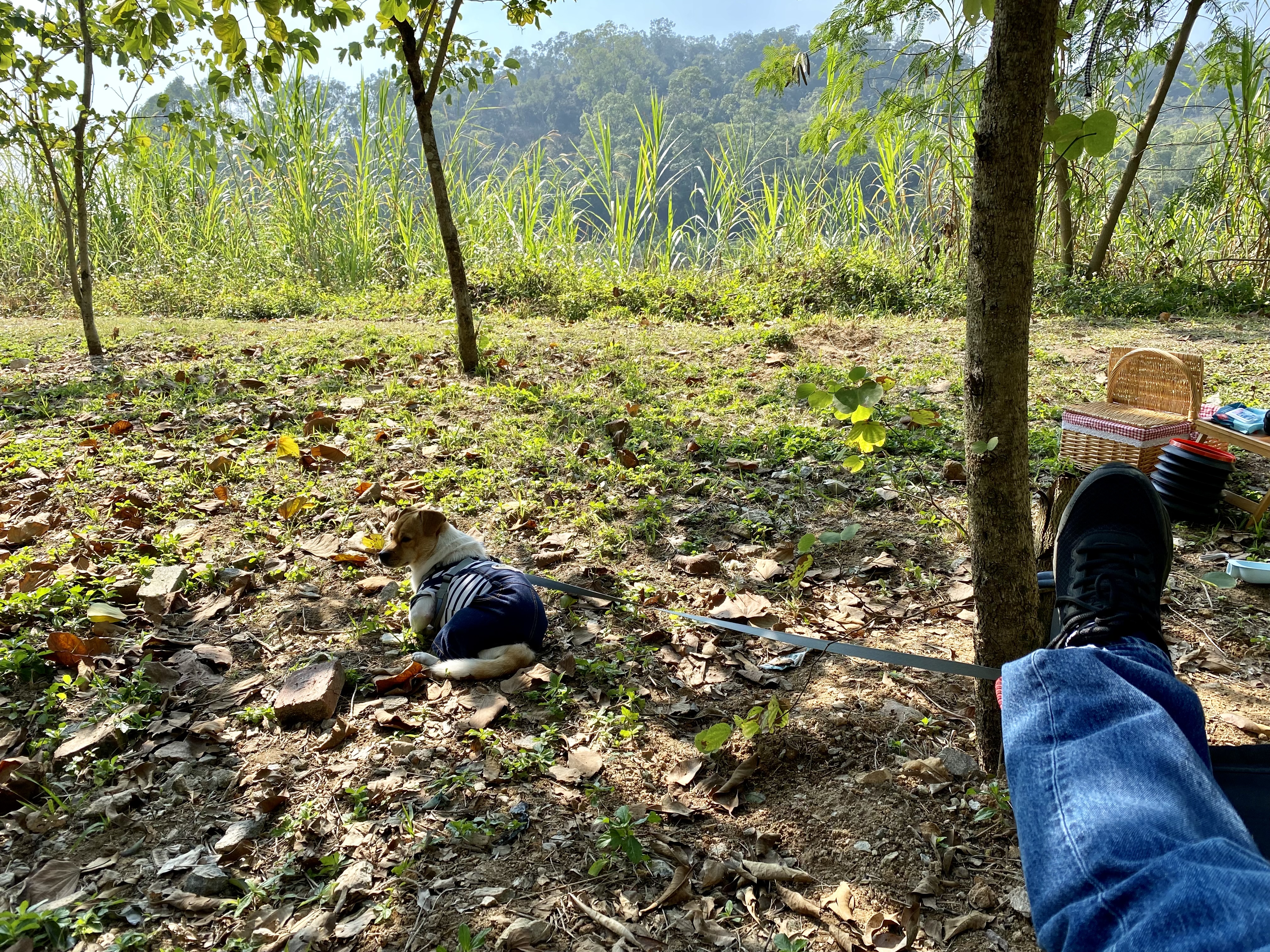 나무 아래에서 나른한 오후를 보낸 후, 심심해 하는 강아지를 위해서 짐을 정리하여 차에 넣어 놓고 산책을 가기로 하였다.