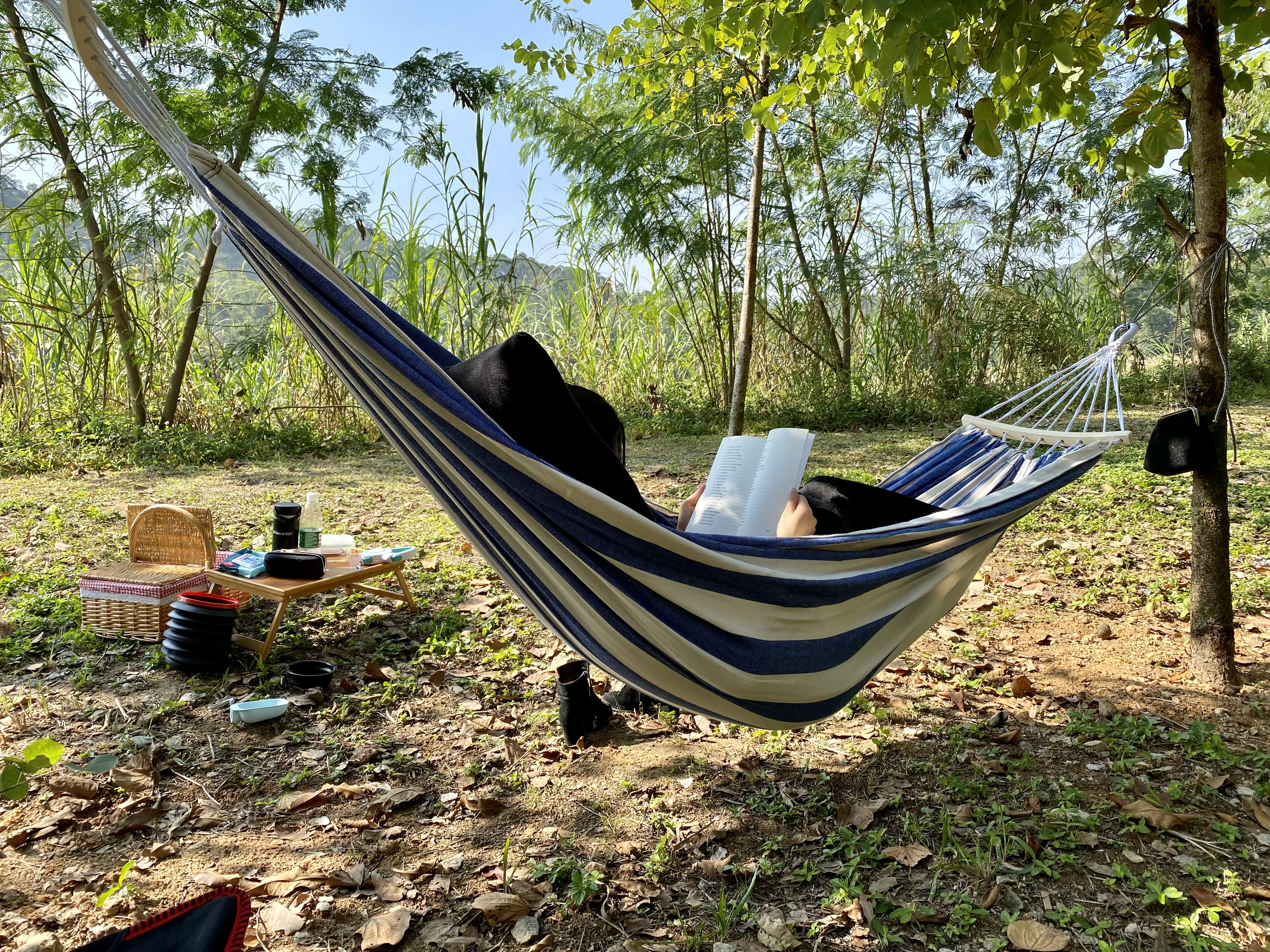 작년즈음에 해먹을 사서 처음으로 사용해 봤는데, 생각보다 훨신 편하다. 한국돈으로 1~2만원정도 밖에 안했던 듯 하다. 거의 누울 수 있는 접이식 의자도 1만원정도.