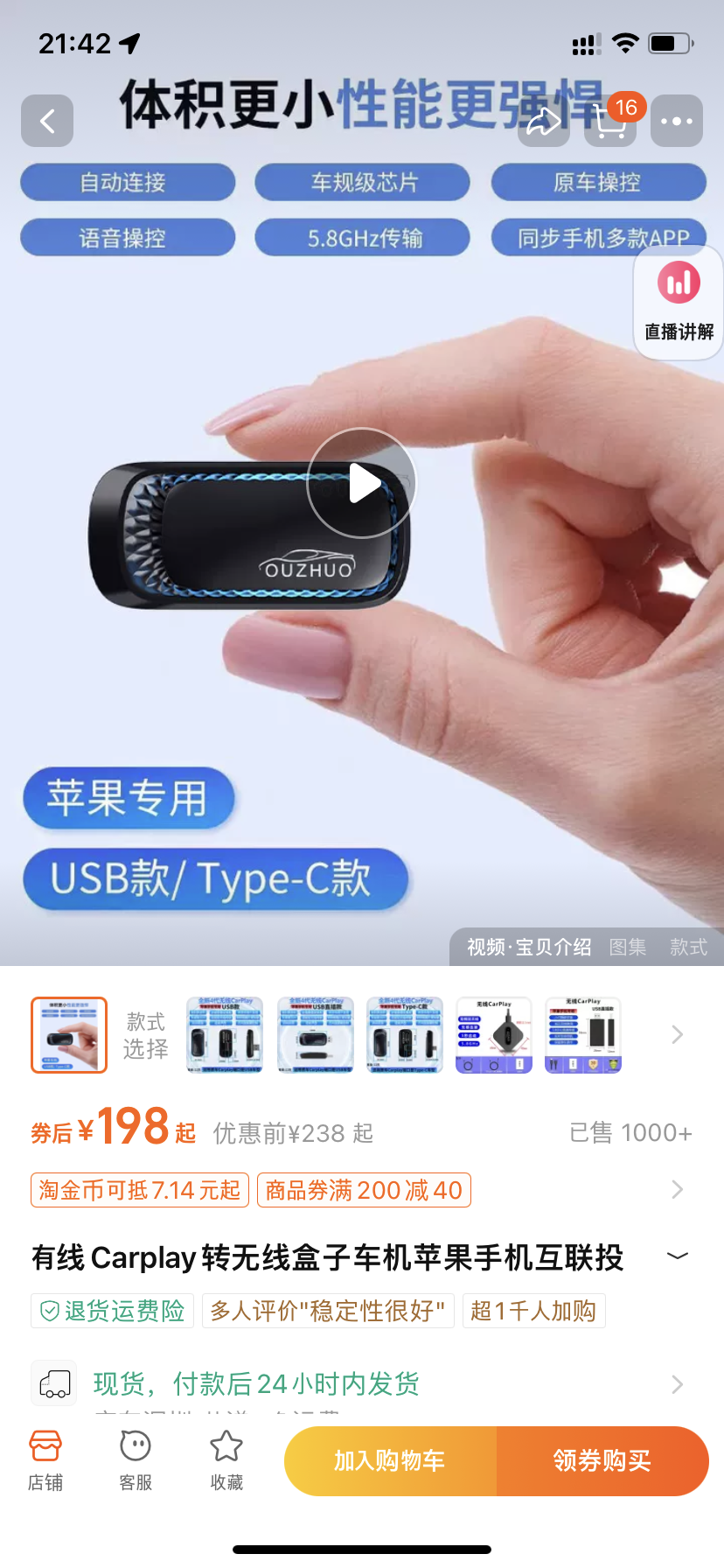 지금 사용하는 차량은 애플 카플레이가 지원되는 차량이라 매우 유용하게 쓰고 있지만, 유선 연결밖에 되지 않는 것이 흠이라면 흠이었다. 늘 USB로 핸드폰에 연결해야 되고, 핸드폰을 사용해야 할 때는 다시 선을 분리하면 카플레이와도 연결이 해제되다 보니 좀 번거로웠는데, 인터넷에 찾아보니 무선으로 카플레이를 연결시켜주는 모듈이 있다는 것을 발견했다.