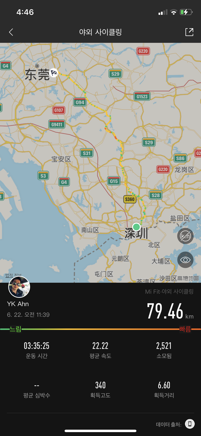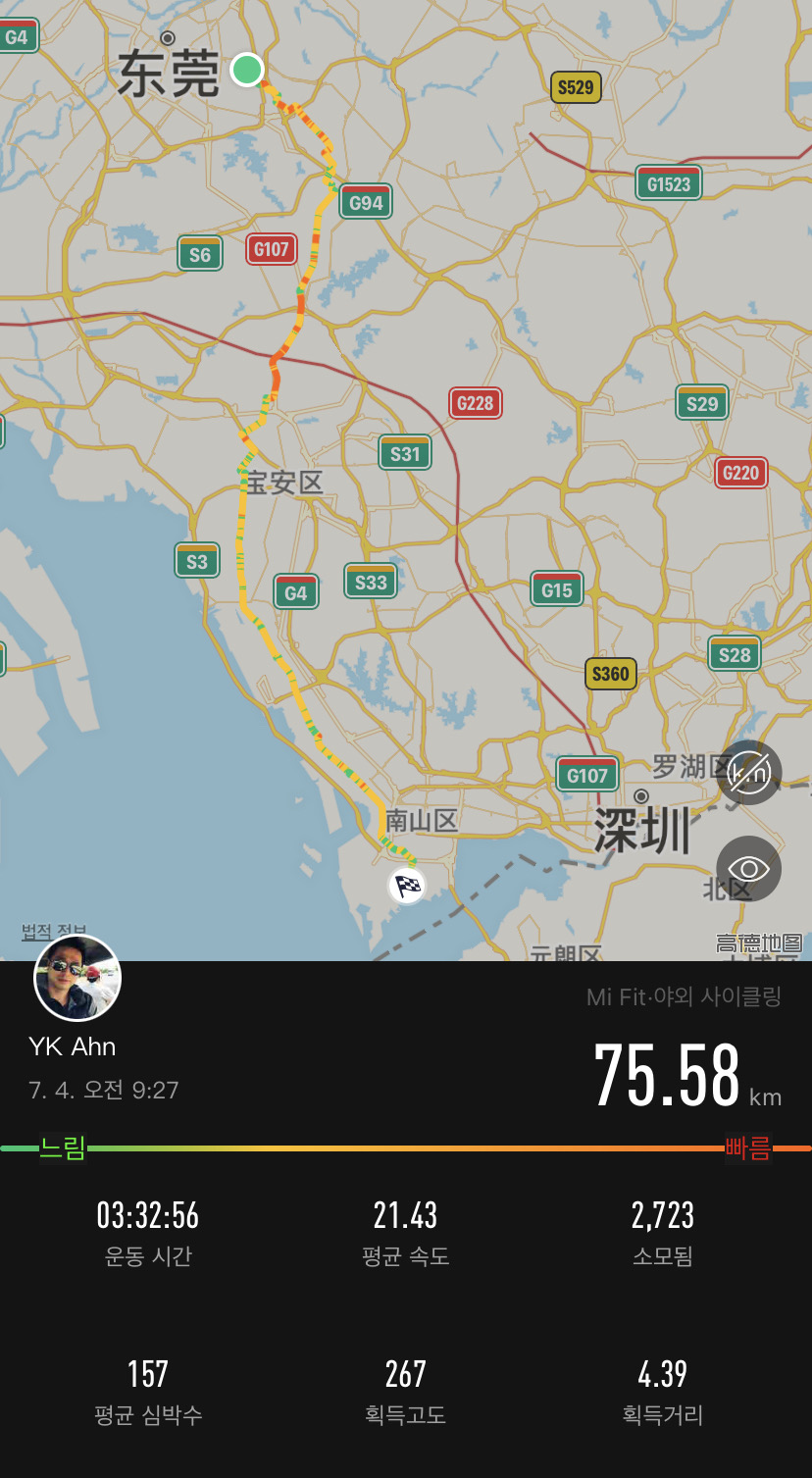 기록앱상에는 4시간이 안되게 나오지만 중간에 잠깐씩 쉬었던 시간을 합치면 대략 4시간 반정도 된다. 이때가 중국에서 갑자기 코로나가 다시 나오게 되었을 때라, 심천에 와서도 전혀 돌아다니지는 못했다.